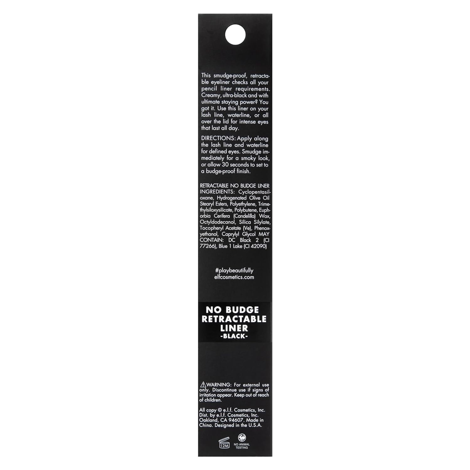 e.l.f. No Budge Retractable Eyeliner, Creamy, Ultra-Pigmented & Waterproof, Creates Bold & Defined Lines, Vegan & Cruelty-Free, Black 0.006 OzCreate a new description for this product from the title with 500 characters